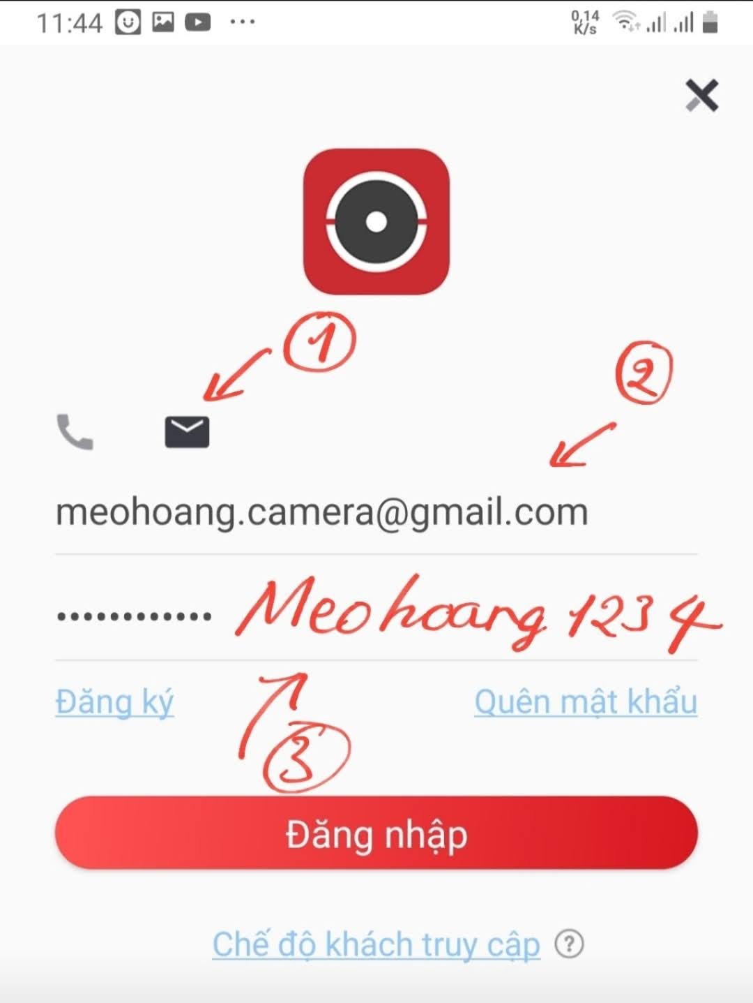 Bước 2 - Đăng nhập với tài khoản Camera Mèo hoang