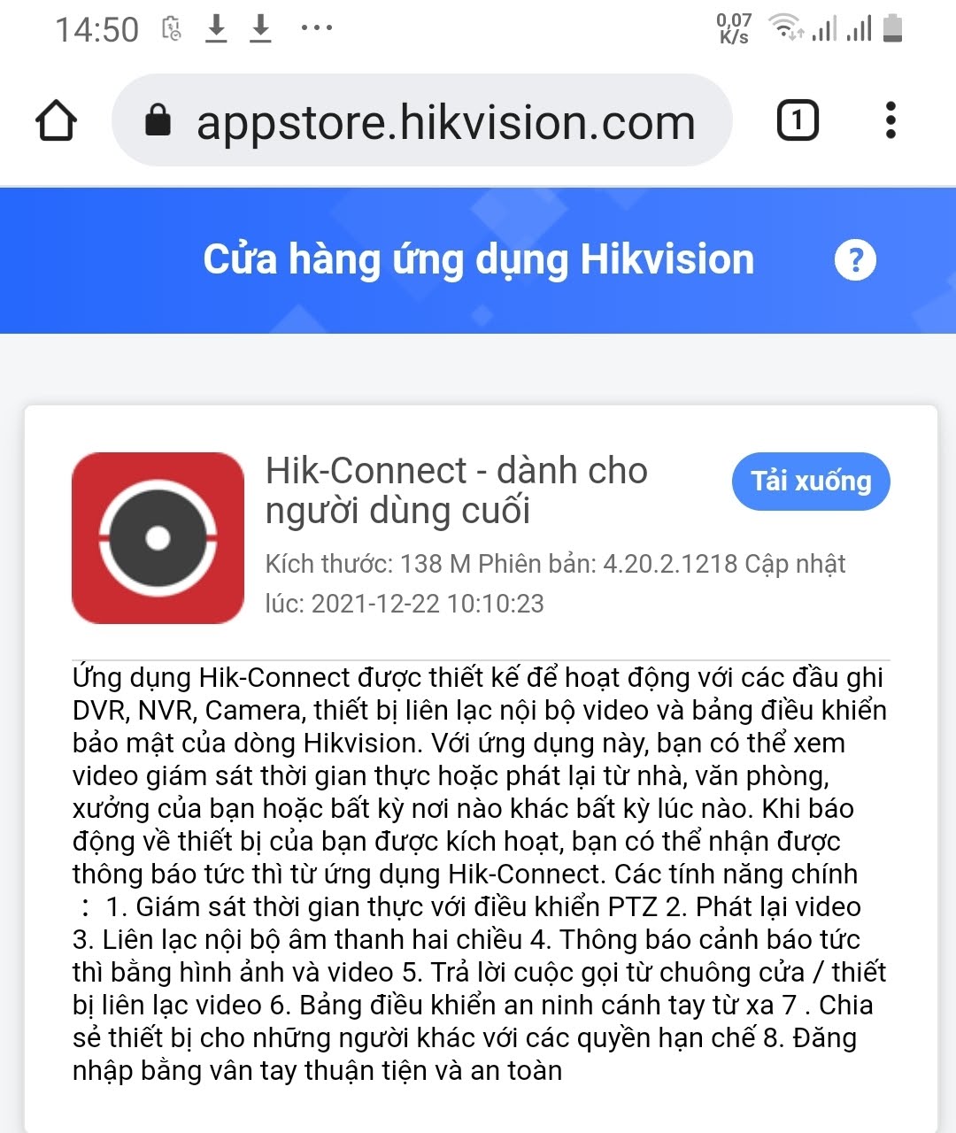 1- Cài đặt phần mềm Hik-Conect lên điện thoại