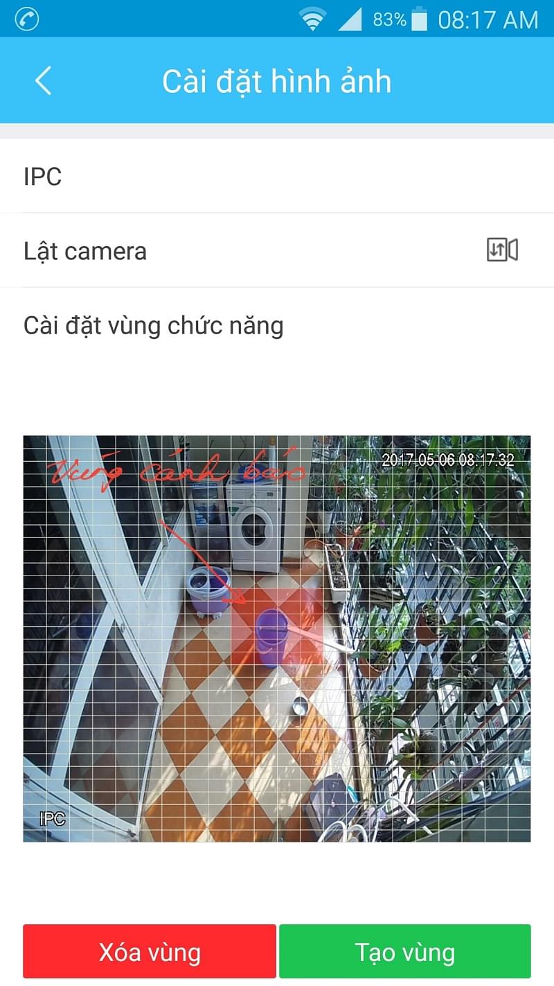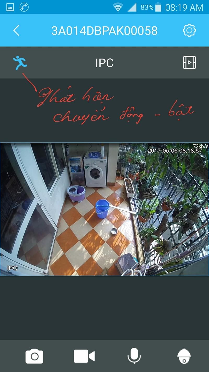 Vùng quan sát đã được thiết lập , khi con chuột mò vào sẽ có thông báo vào điện thoại để xem trực tiếp luôn.