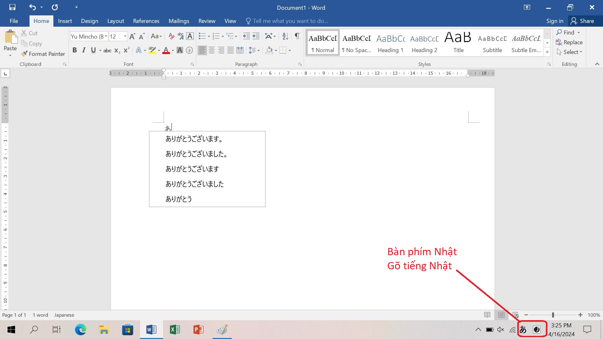 Khi gõ tiếng Nhật , ta chọn như hình dưới để gõ tiếng Nhật