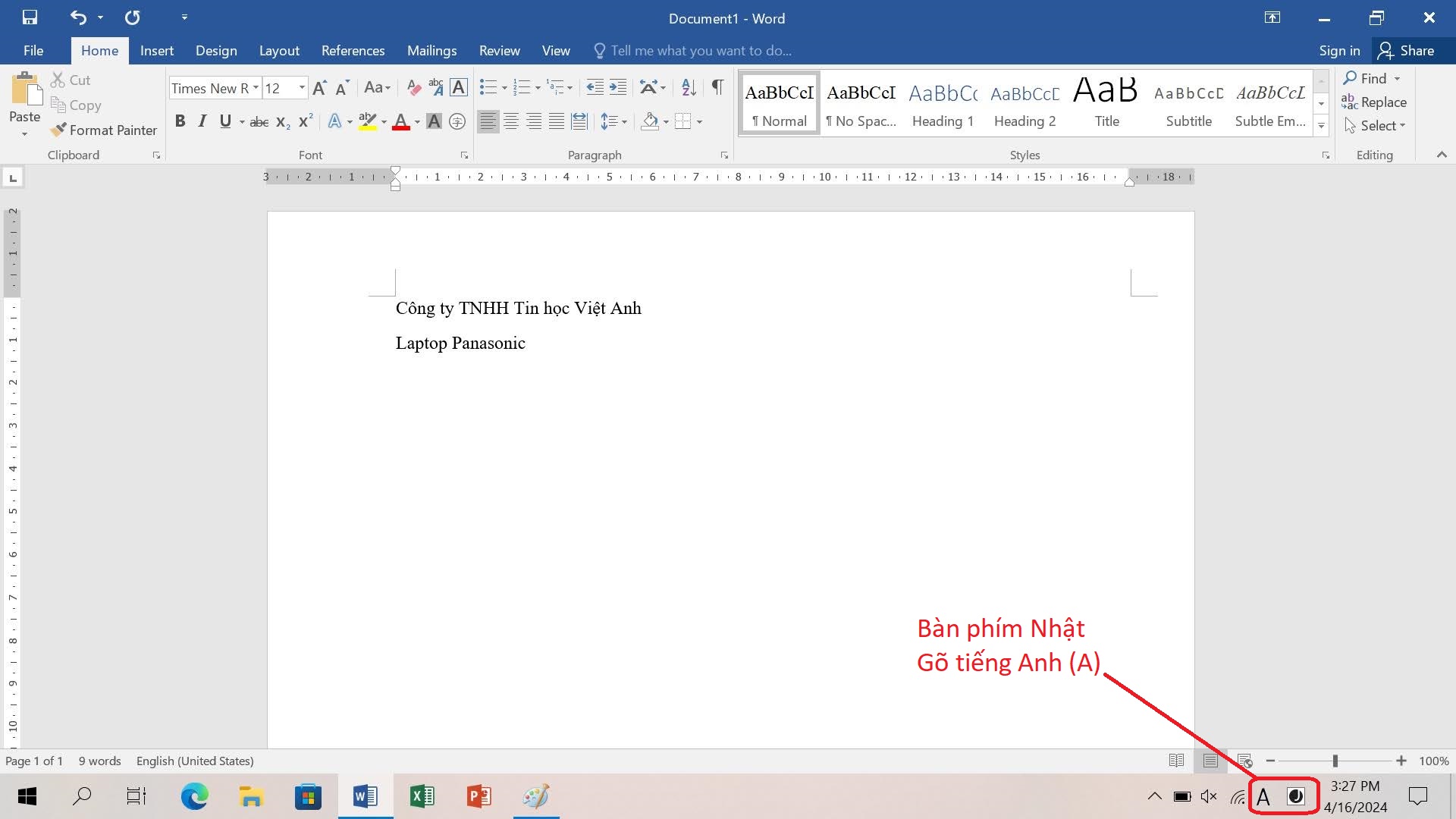 Khi ta gõ tiếng Anh - Phải thấy chữ A như hình dưới , còn khi gõ tiếng Việt thì vẫn chạy Unikey để gõ tiếng Việt như mọi khi