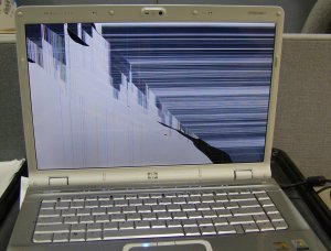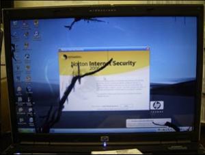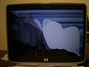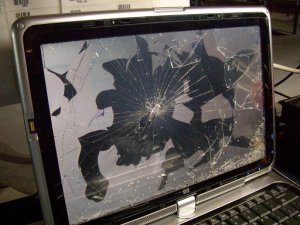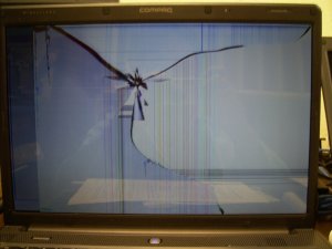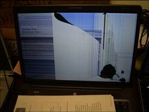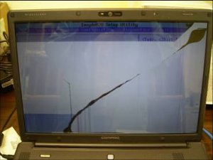 " Màn hình hiển thị LCD trên máy tính xách tay được làm bằng hai lớp kính mỏng với vật liệu tinh thể lỏng màu đen ở giữa. Kính được phủ bên ngoài bằng một lớp nhựa. Khách hàng thường cảm thấy rằng không thể có một màn hình LCD bị hỏng vì họ không thấy các dấu vết va chạm. Tuy nhiên, các vết nứt trong kính thường không thể cảm nhận được vì lớp vỏ bằng nhựa hiếm khi bị vỡ hoặc gãy.